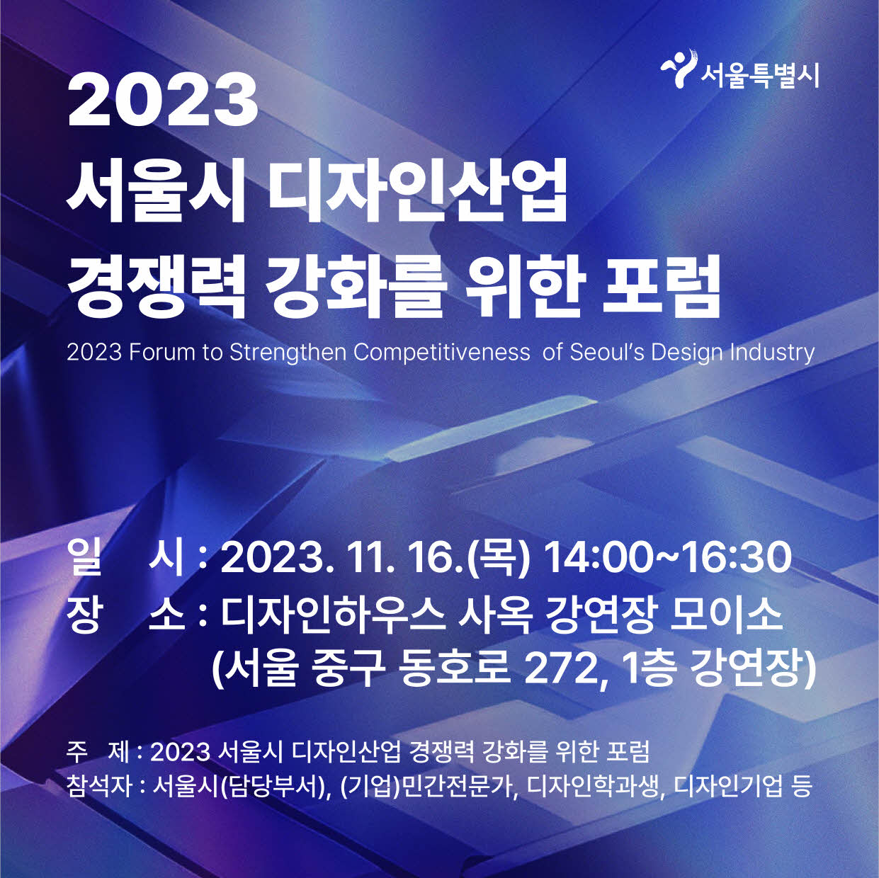 [서울시] 디자인산업 경쟁력 강화를 위한 포럼 개최 안내